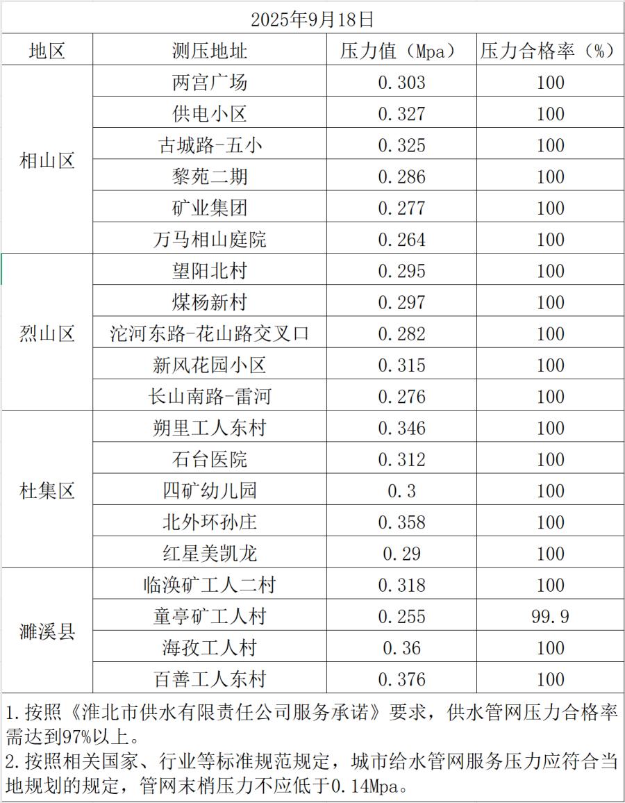 2025年9月18日水壓抽測公示